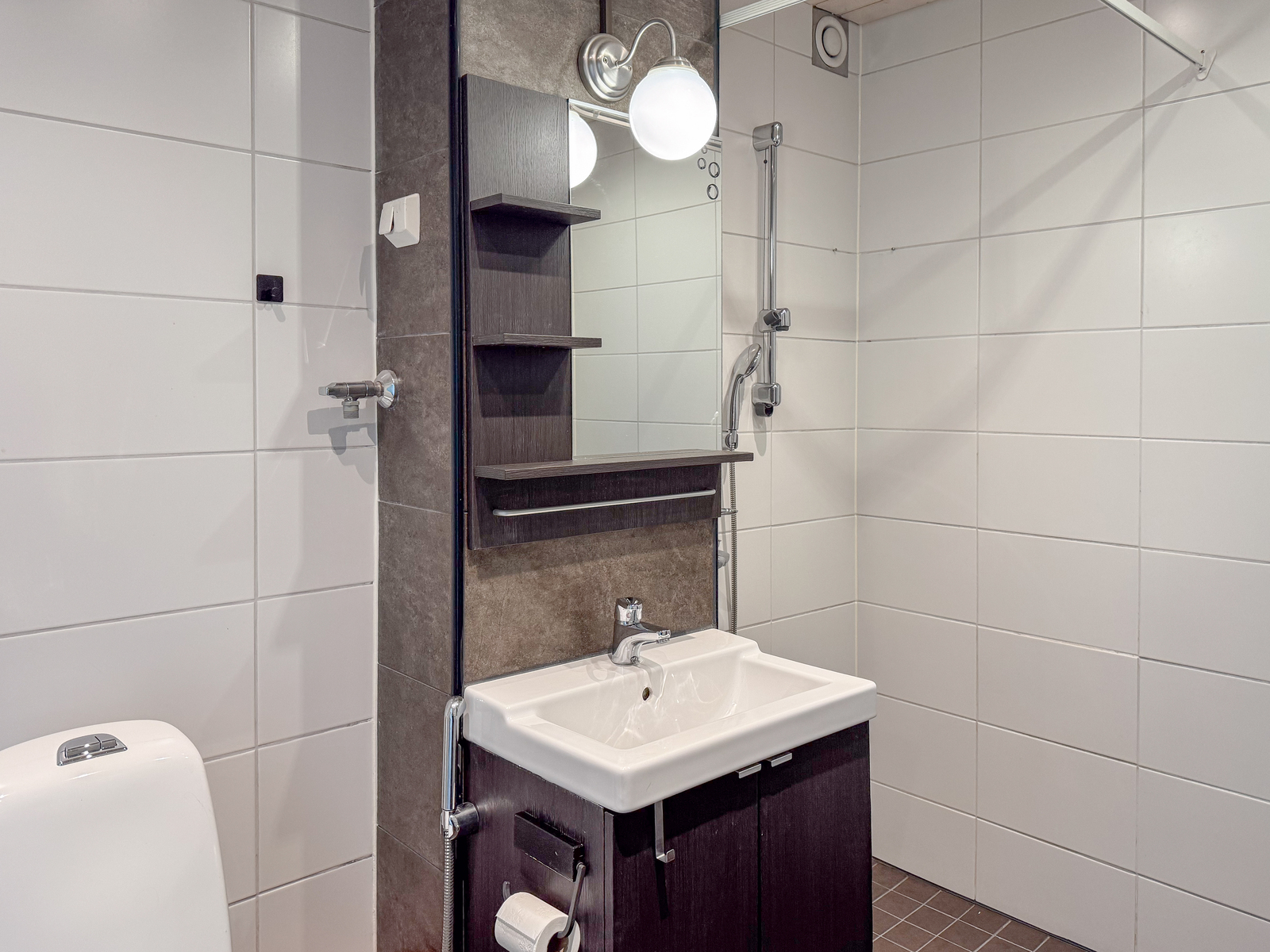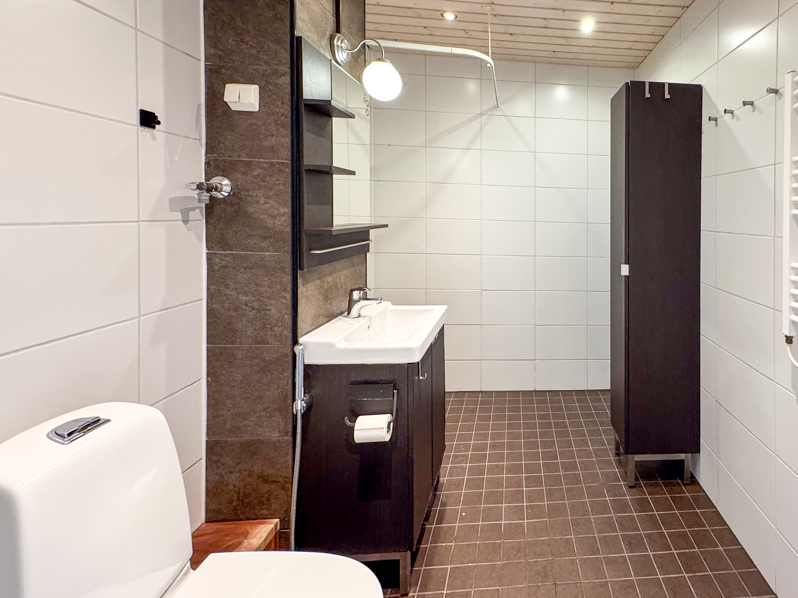 • Varusteet: pesukoneliitäntä, wc-istuin, suihku, peilikaappi